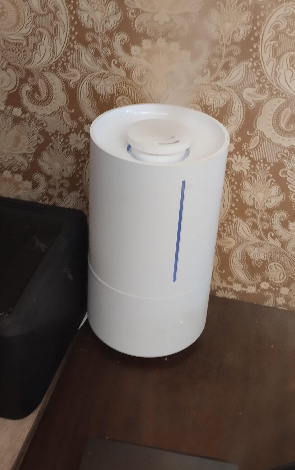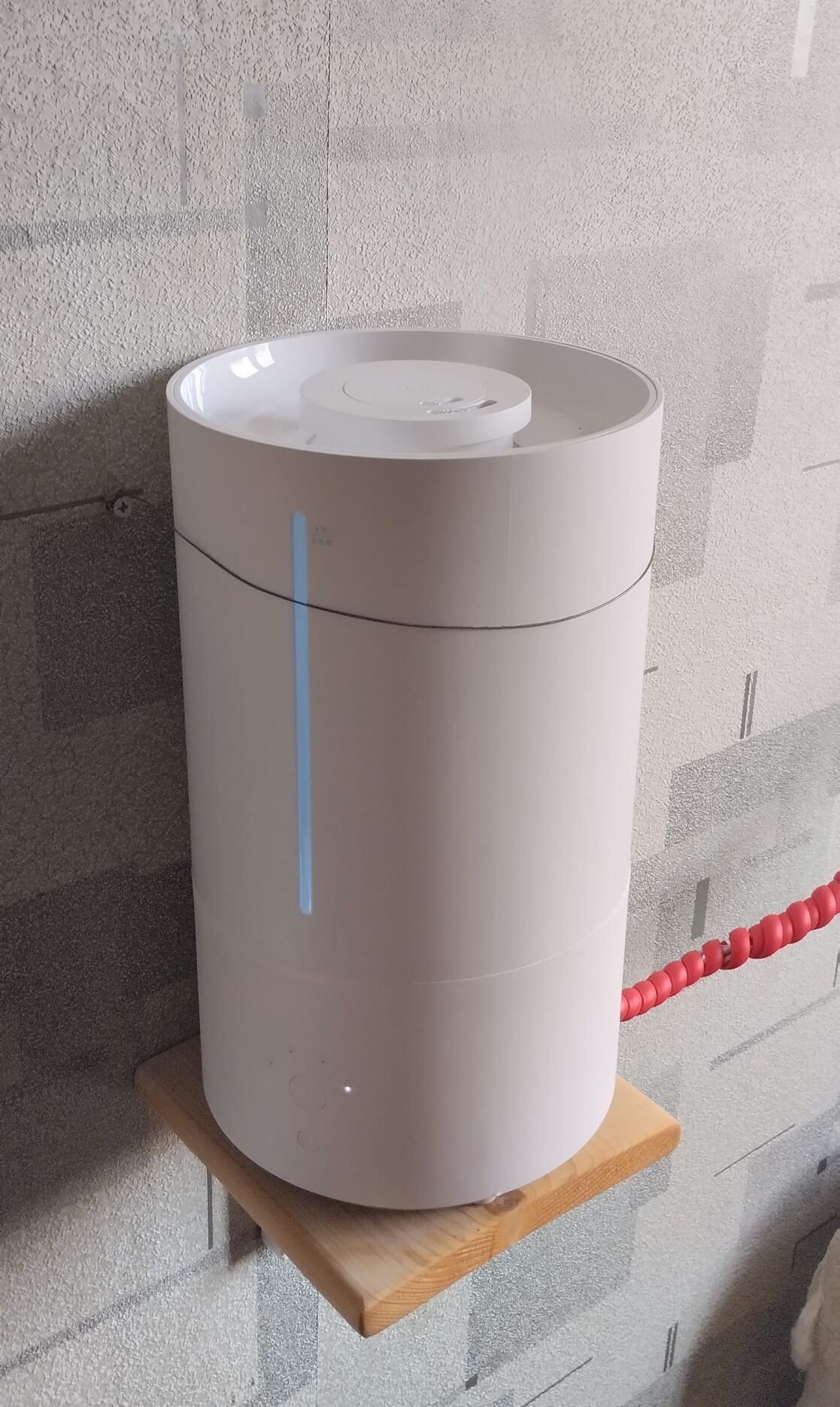 Устанавливать увлажнители на пол или на стол — идея не удачная. В этом случае при полной мощности увлажнителя под ним может образовываться лужа, из за того что пар не успевает растворится в объеме воздуха и выпадает на поверхности конденсатом. Самый лучший вариант оказался — использовать небольшие настенные полочки, на высоте чуть более метра над полом, по размеру чОтко в размер самого прибора, и направлять струю пара в сторону от стены. Тогда холодный пар падая вниз, успевает смешаться с воздухом в комнате и конденсата на полу не образовывается.