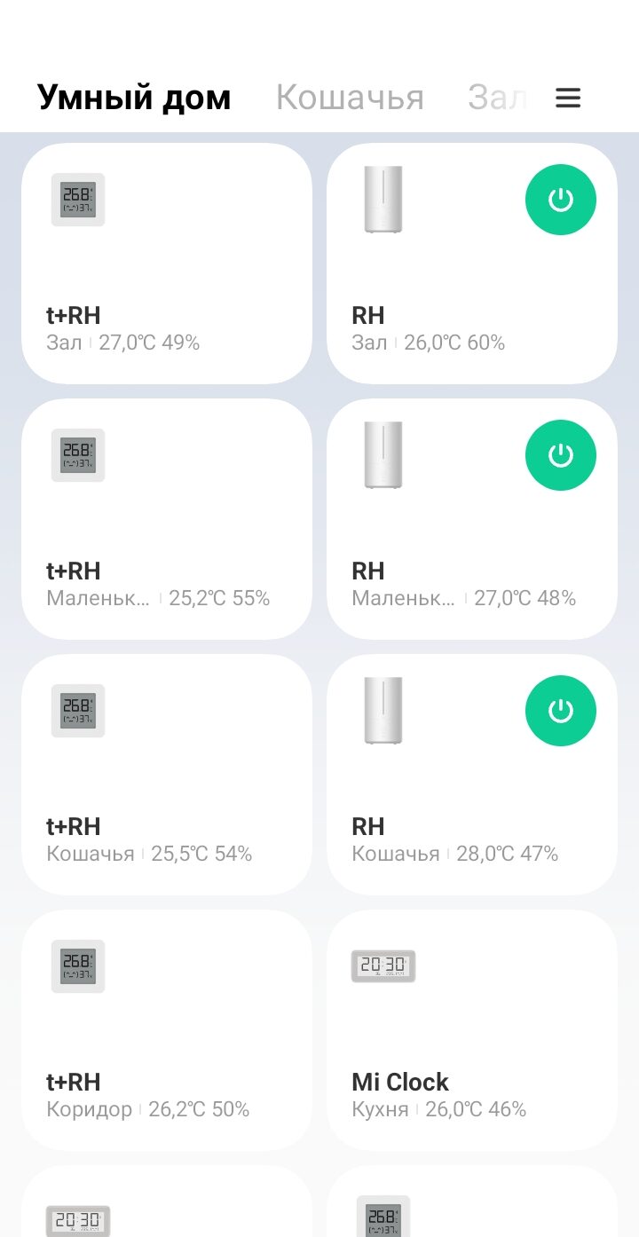 Там-же отображаются и сами увлажнители, что удобно. Можно всем этим управлять и контролировать из одного приложения. Увлажнители я тоже поставил самые дешевые, тоже Xiaomi, но с большими баками на 4.5 литра.