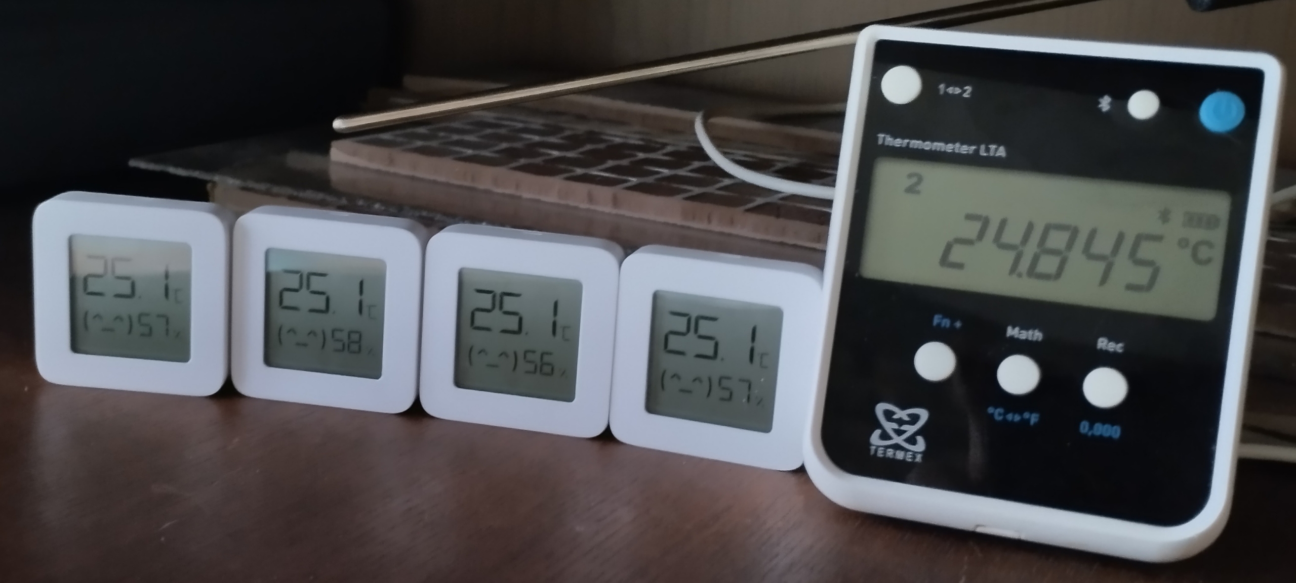 Для реализации задачи были закуплены термометры-гигрометры и часы с гигрометром, самые простенькие дешевые от Xiaomi. Немного конечно врут, но в пределах допустимого.